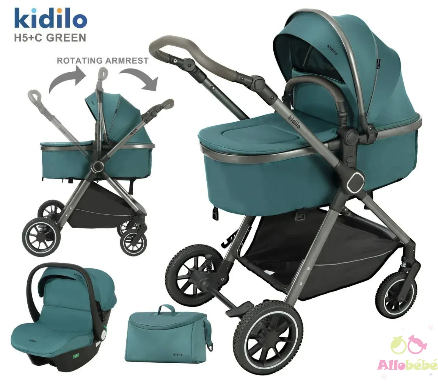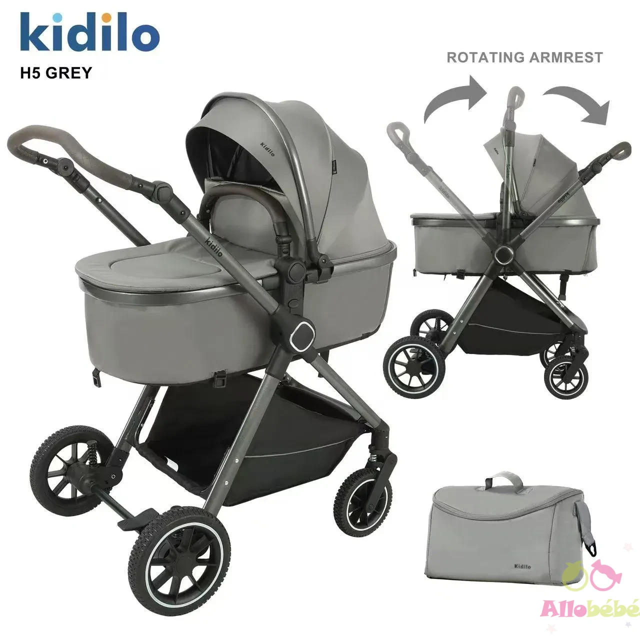 La Poussette H5+C Multifonctions – Kidilo est un pack complet 3 en 1 conçu pour accompagner les parents dès la naissance de leur bébé. Elle allie sécurité, confort et praticité, idéale aussi bien pour les balades quotidiennes que pour les voyages.