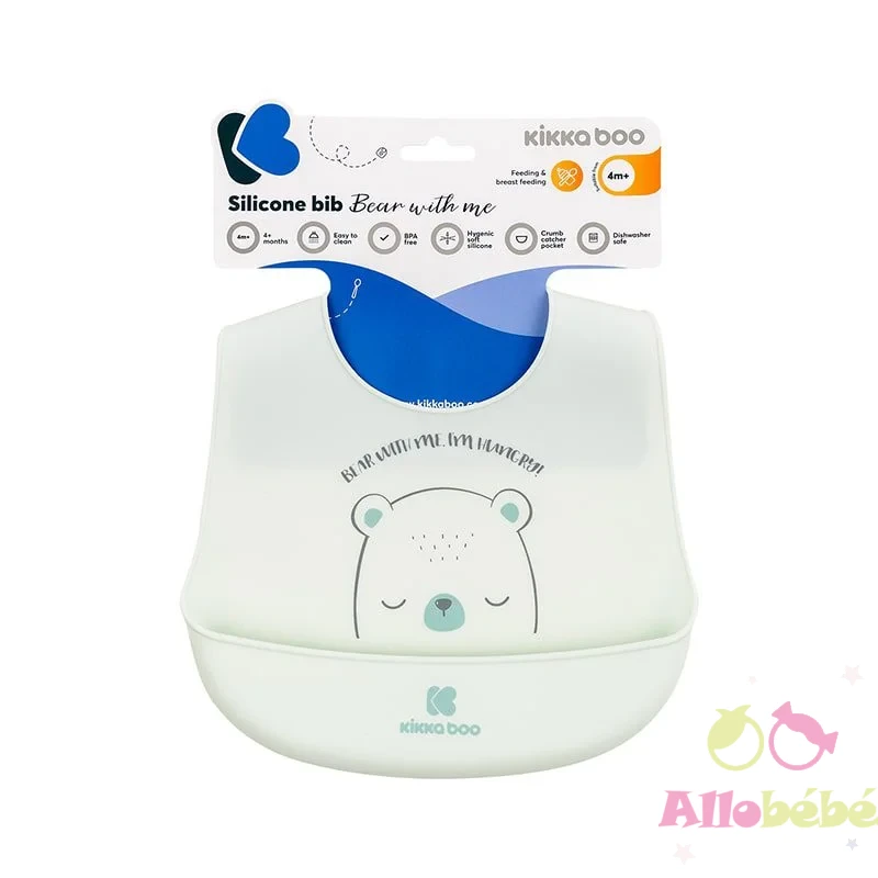 Bavoir en Silicone “Bear with me”Repas Propres et Ludiques – Kikkaboo