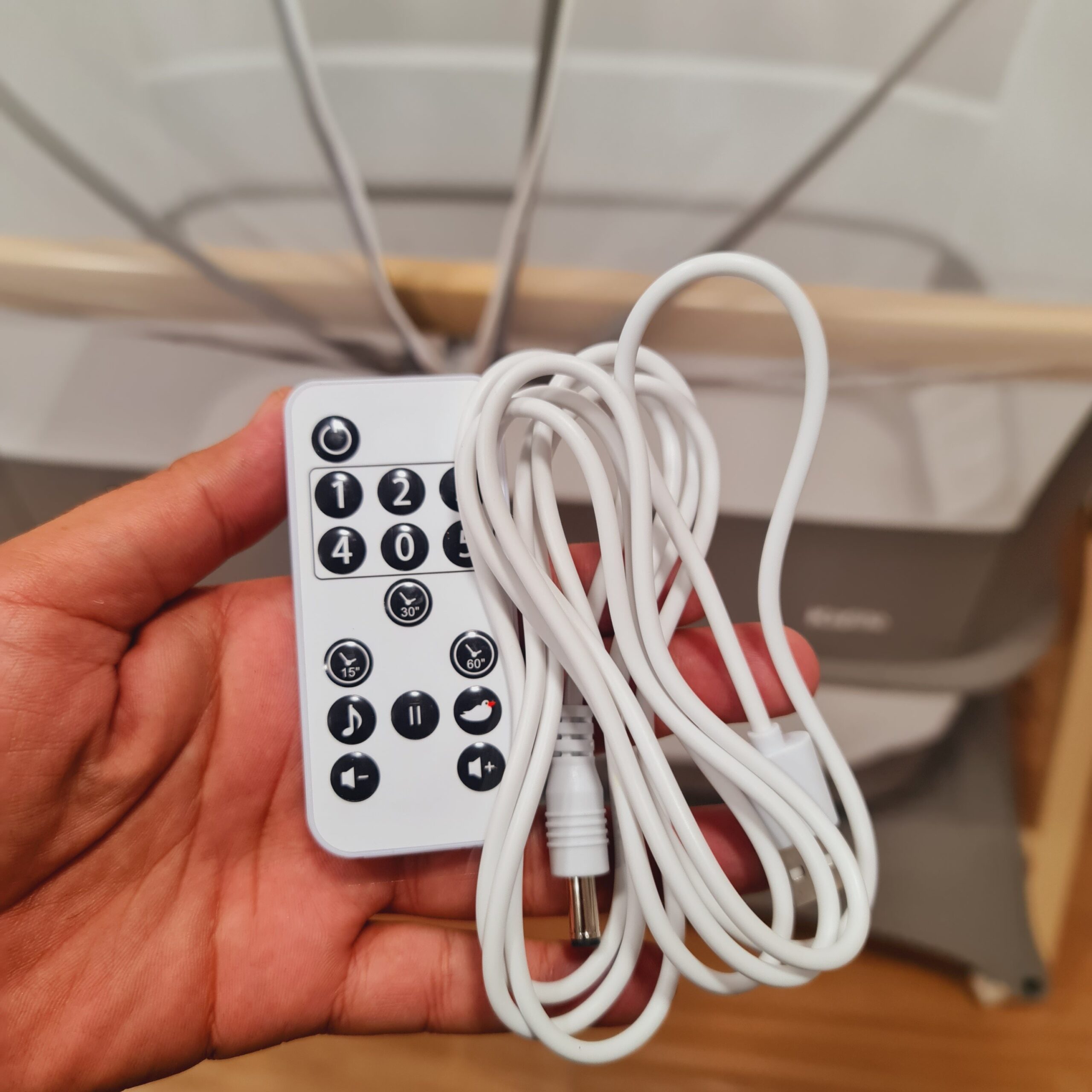 La connectivité Bluetooth vous permet de diffuser vos propres playlists apaisantes depuis votre smartphone ou tablette. La télécommande sans fil (portée 10 mètres) contrôle toutes les fonctions : vitesse, mélodies, timer, sans avoir à vous lever.