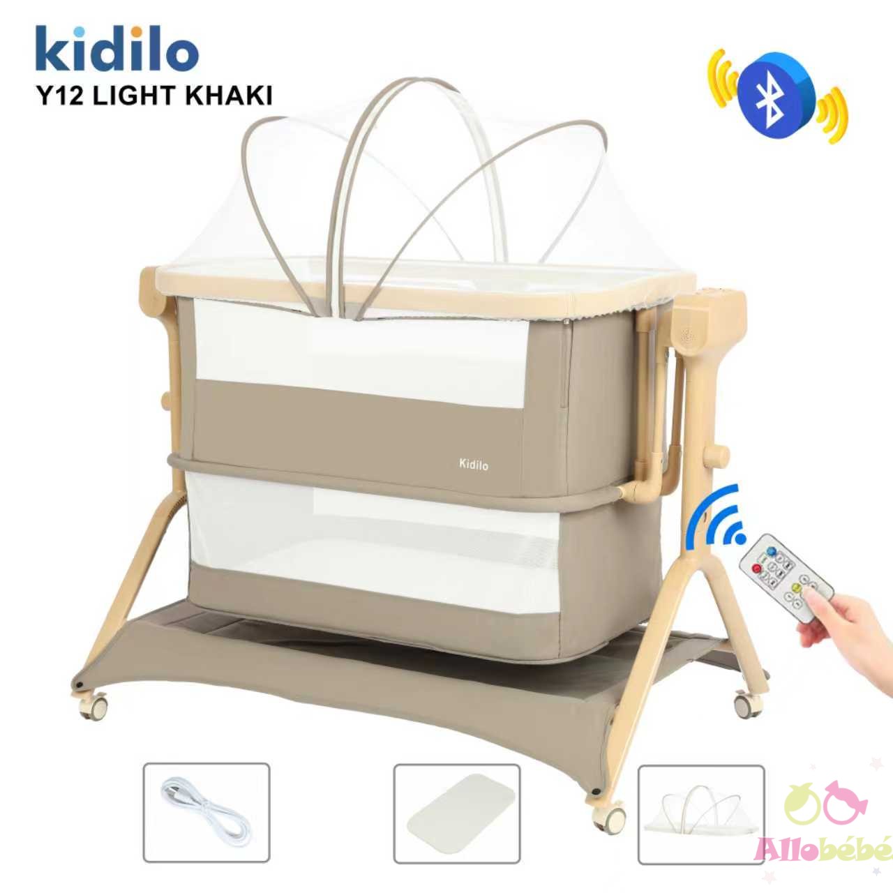 Le Berceau Cododo Électrique Deluxe Kidilo Y12 Transformable en parc révolutionne le sommeil de bébé en combinant trois fonctions essentielles : berceau cododo, balancelle électrique et lit bébé sécurisé. Conçu par la marque Kidilo, ce berceau intelligent intègre la connectivité Bluetooth, une télécommande sans fil et 12 mélodies apaisantes.