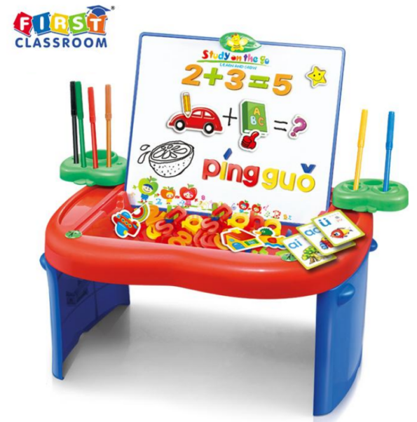 Cette superbe table multifonction en forme d’éléphant, accompagnée de sa chaise assortie, viendra enrichir l’espace de travail dans la chambre de votre enfant.
