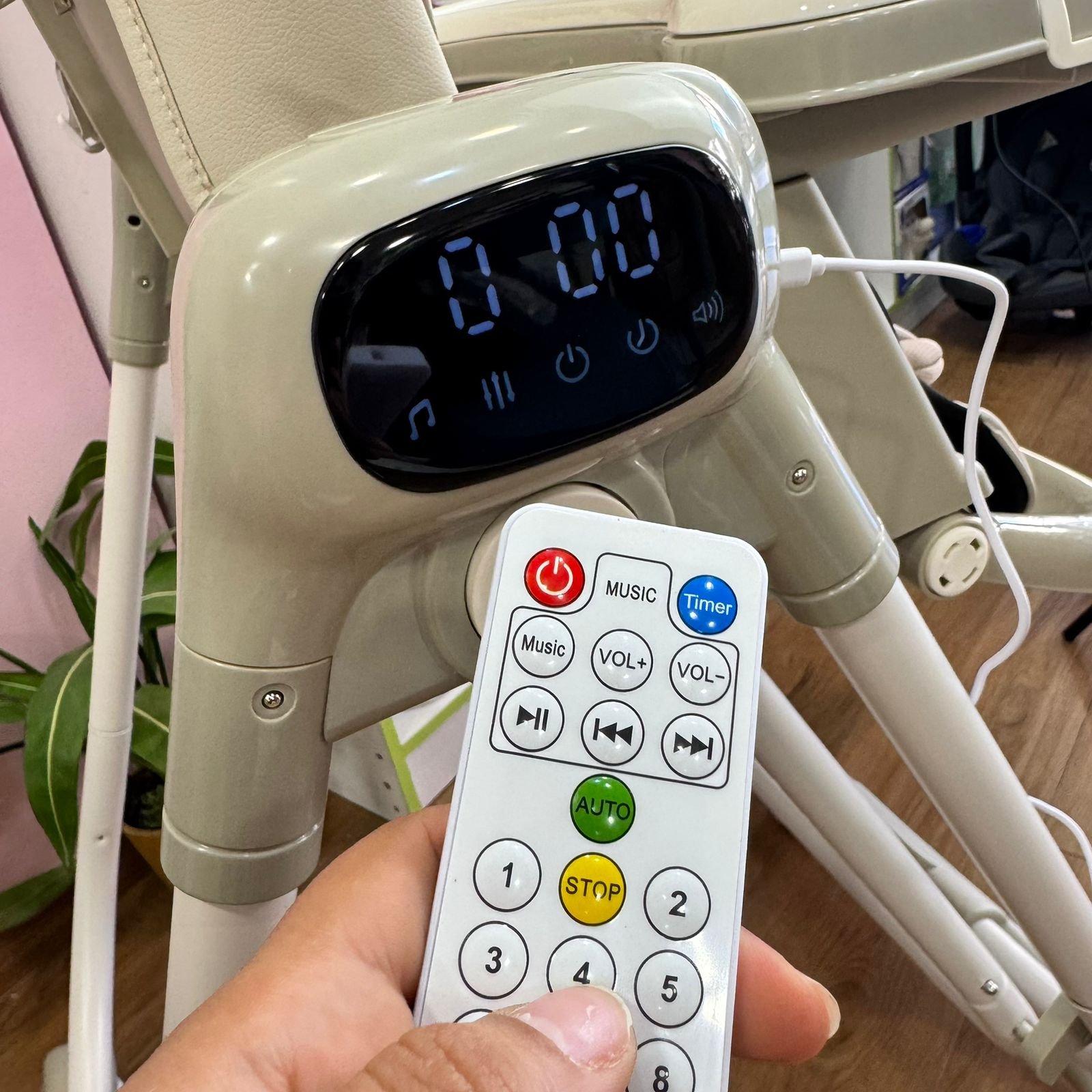 - Type : Chaise haute + balancelle électrique 2 en 1