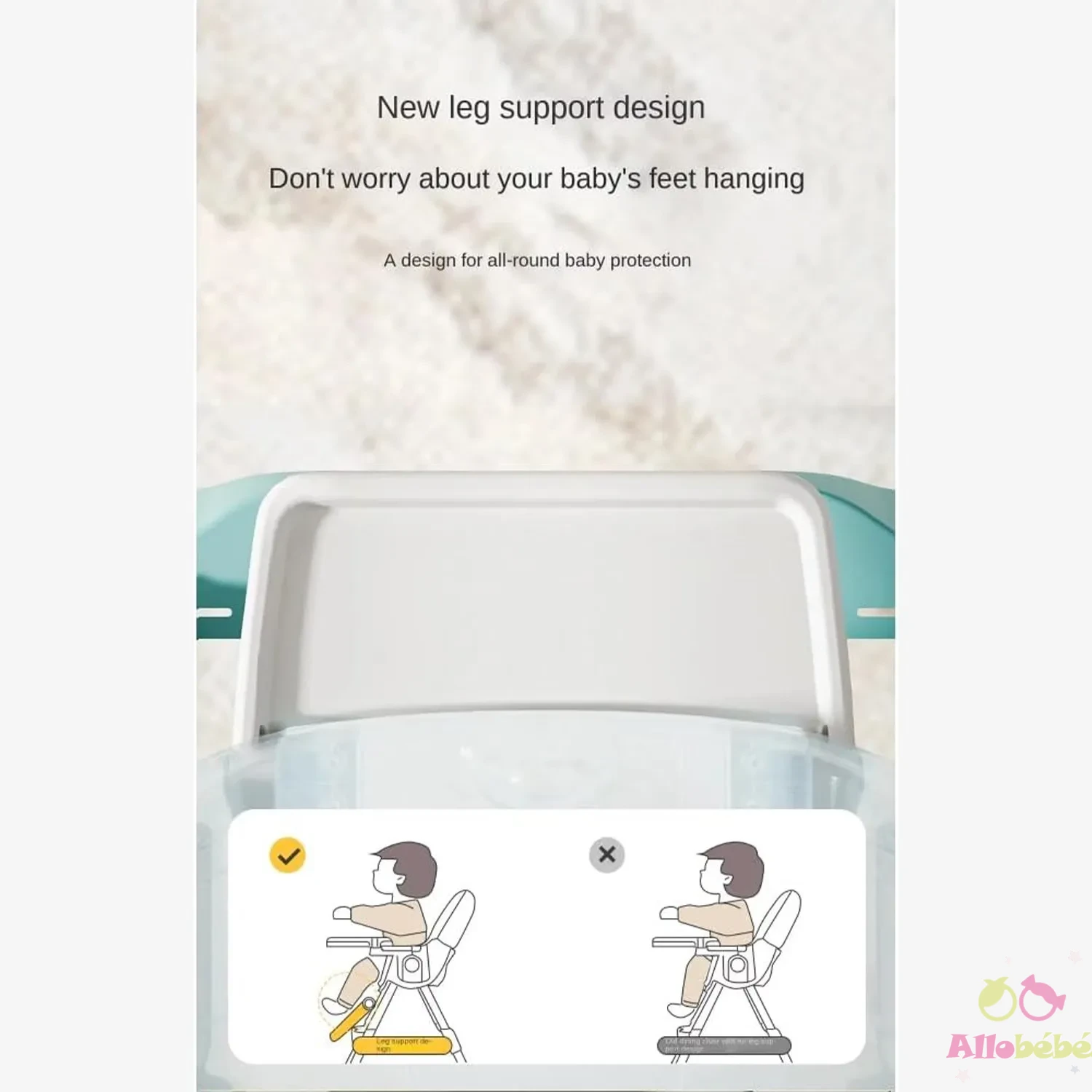 ✔ تصميم قابل للتعديل (كرسي عالي، كرسي منخفض، مقعد سفر…)
