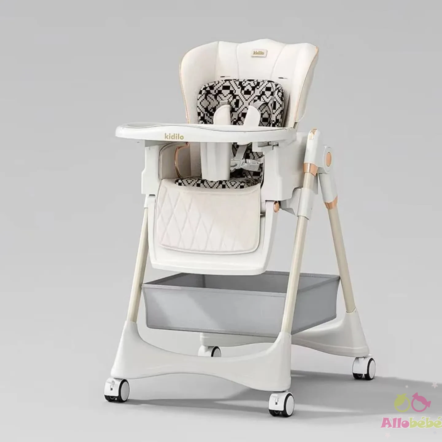 La chaise haute multifonction KD8100 de Kidilo est la solution idéale pour offrir à votre bébé un espace repas confortable, sécurisé et évolutif.