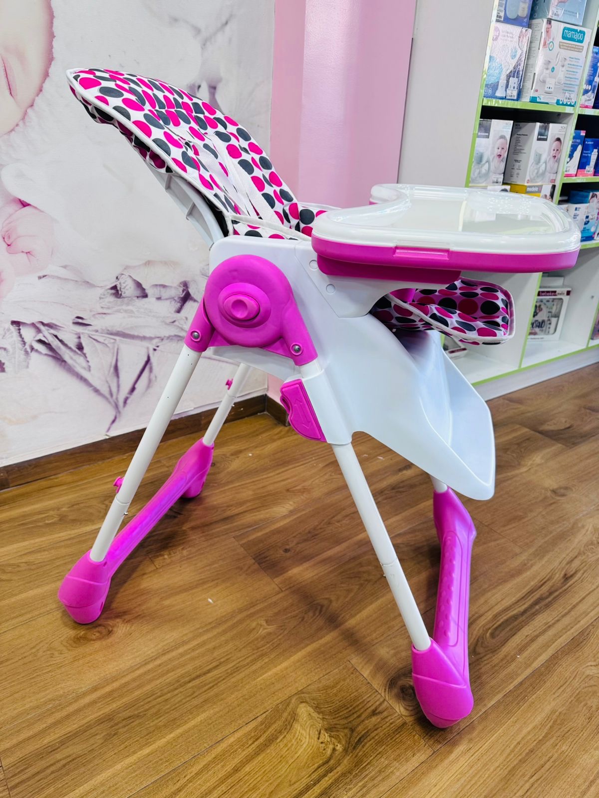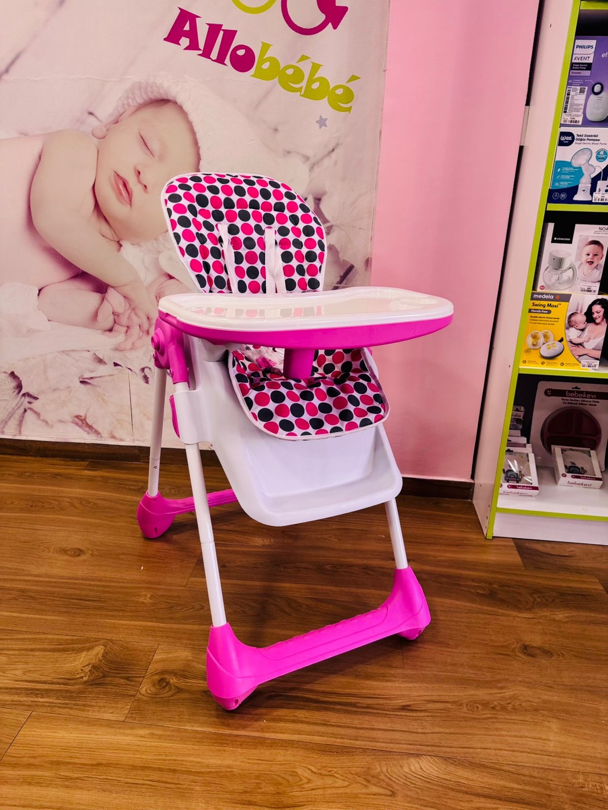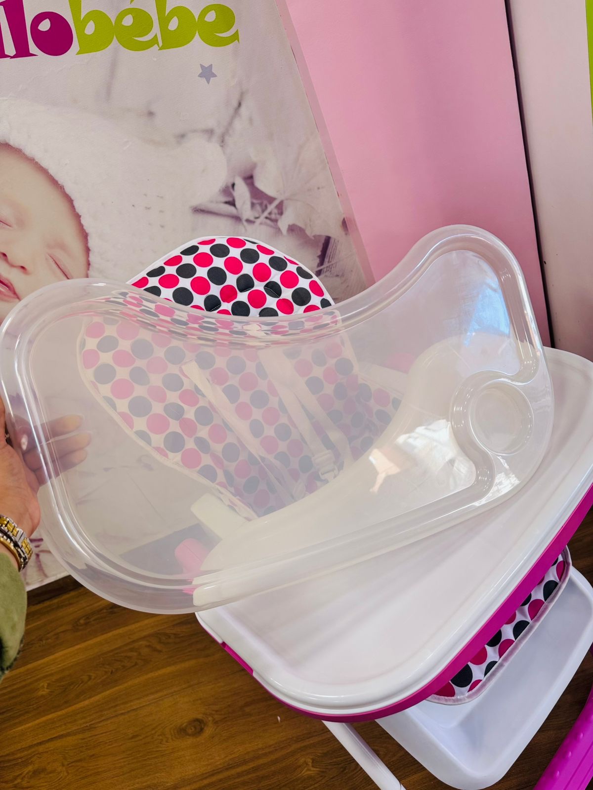 Chaise Haute bebe fille motif pois