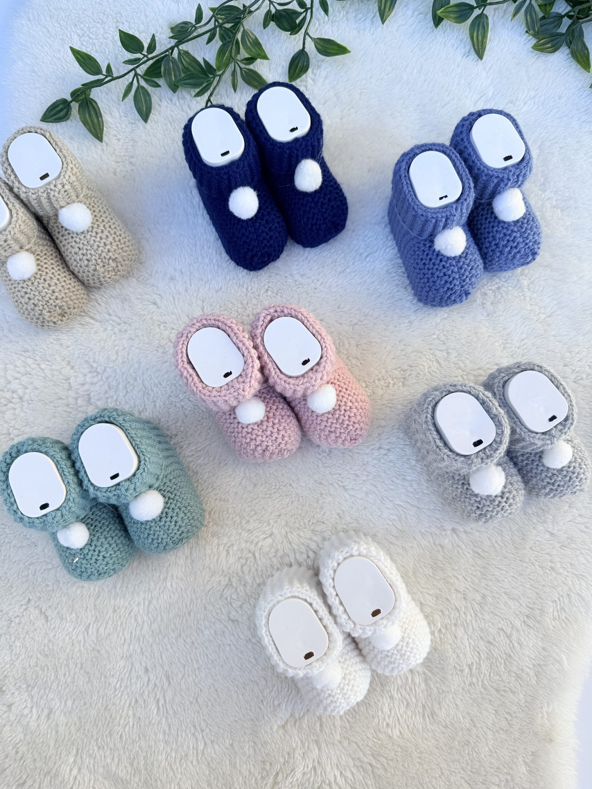 Des jolis chaussons en tricot composés de 100% fil de coton biologique garantissant douceur et respect de la peau fragile de votre enfant.de la naissance à 3mois