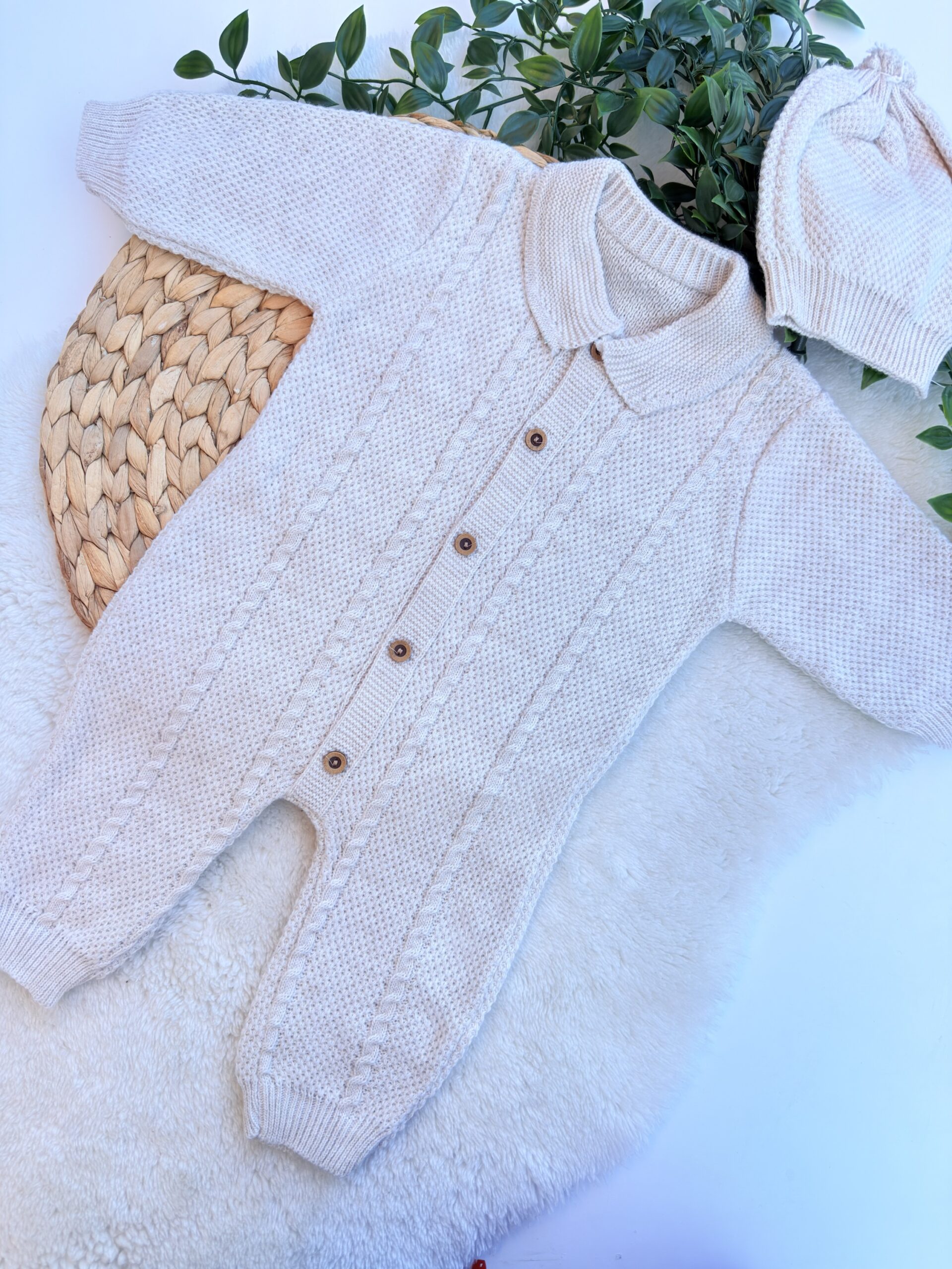 Alliez le charme du vintage et la performance thermique avec cette combinaison pilote en tricot. Accompagnée de son bonnet en cadeau, cet ensemble offre une protection complète contre les premiers froids. Sa maille serrée et douce enveloppe votre bébé dans un cocon de chaleur, tout en lui donnant un look irrésistible de petit aventurier chic.