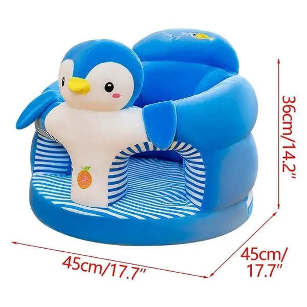 Coussin d’assise bébé en peluche douce forme animaux. Maintient bébé confortablement assis avec protection anti-chute. Dossier rembourré ergonomique, trous pour jambes, base antidérapante. Aide à l’apprentissage de la position assise. De 0 à 48 mois. 7 modèles adorables : pingouin, vache, panda, Pikachu, canard, dinosaure, lapin. Disponible dans nos rayons coussins à Casablanca, Marrakech et Salé. Livraison Maroc.