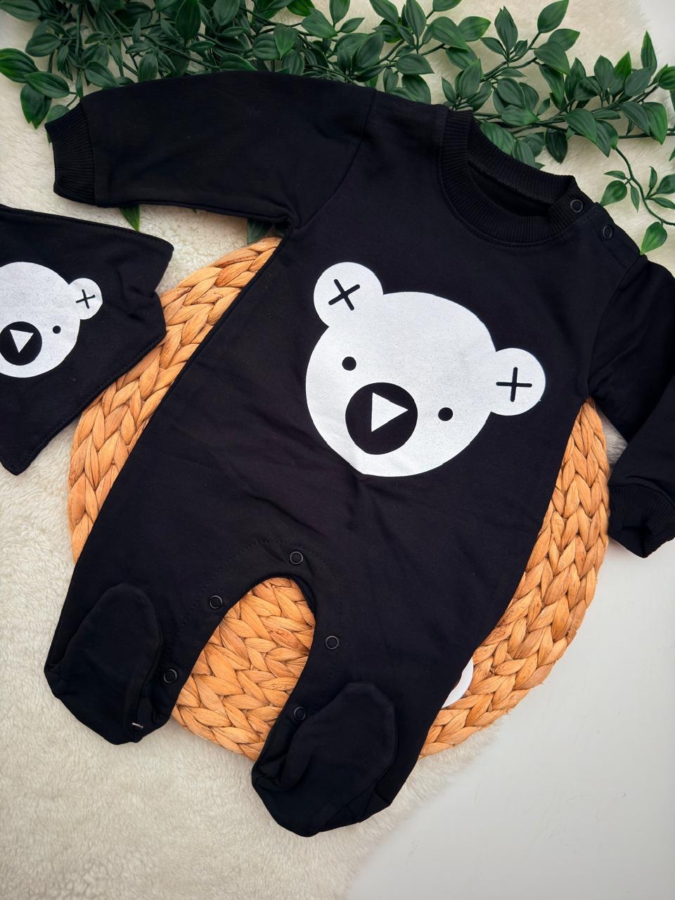 Ensemble Grenouillère Bavoir – L’Élégance Noire en Coton