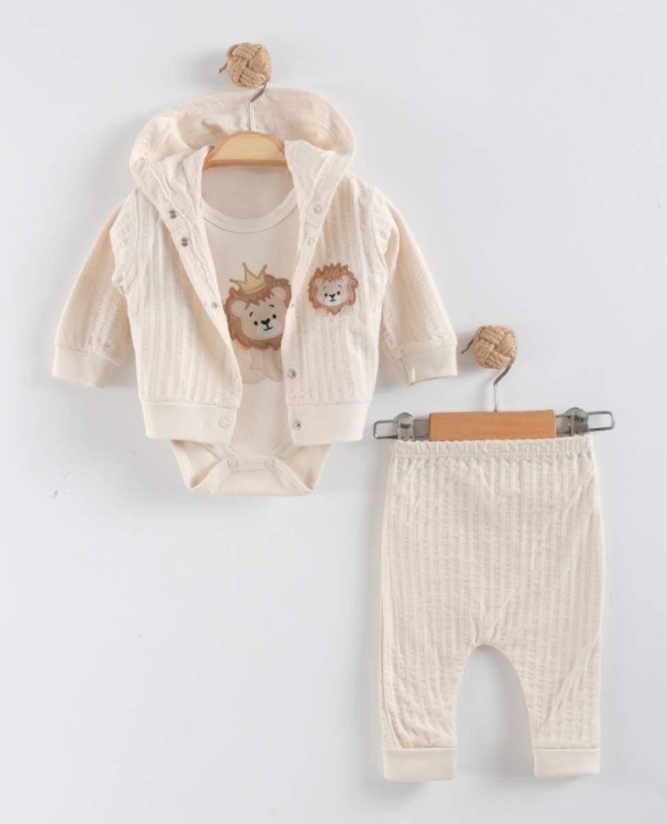 ensemble jogging bebe 3 Pcs Petit Lion – Le Trio en Coton Brodé