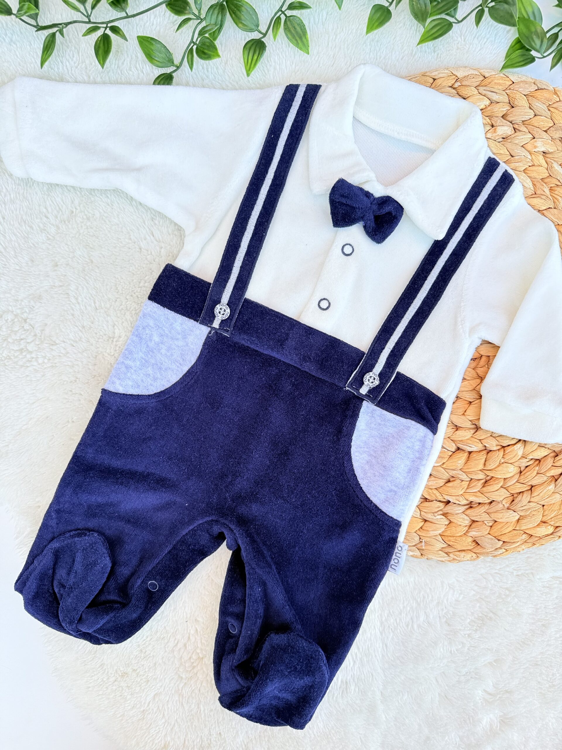 Grenouillère Bébé en Velours Bleu – Élégance et Chaleur