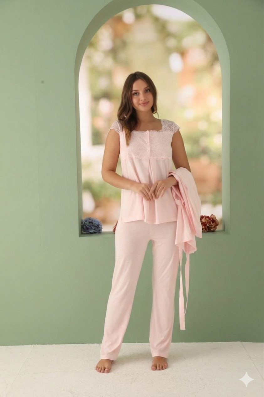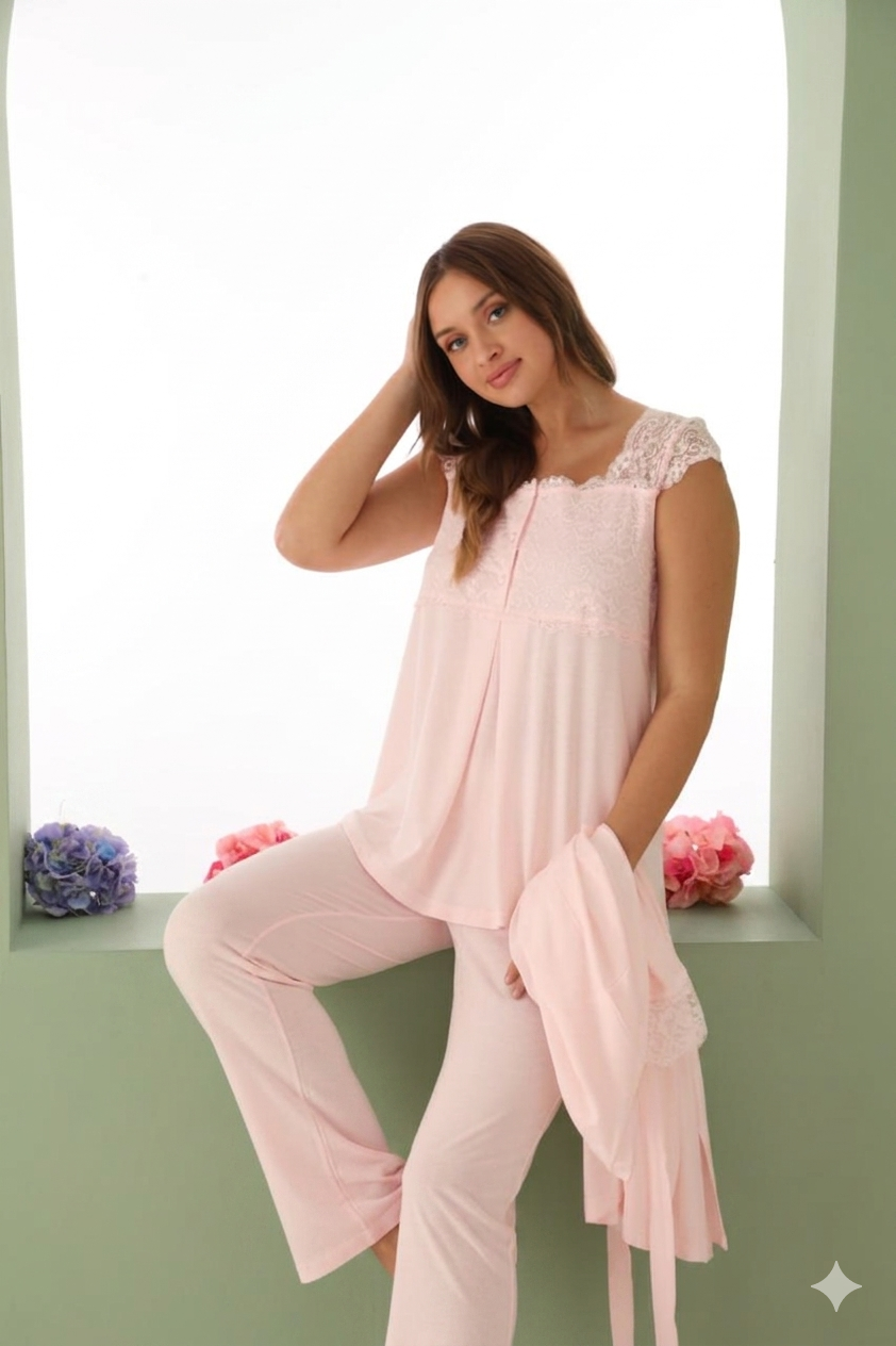 Ensemble pyjama allaitement et grossesse 3 Pcs – Dentelle