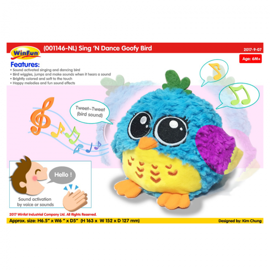 Cet oiseau en peluche de Winfun chante et danse comme le vrai ! Ramenez-le chez vous et laissez bébé éclater de joie en jouant avec son oiseau préféré.