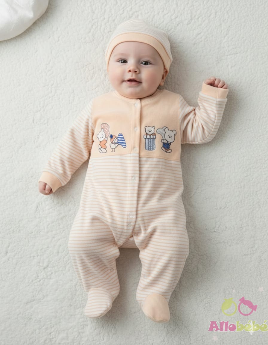 Grenouillère Bébé Garçon Velours Coton : Design Ludique, Douceur et Ouverture Facile
