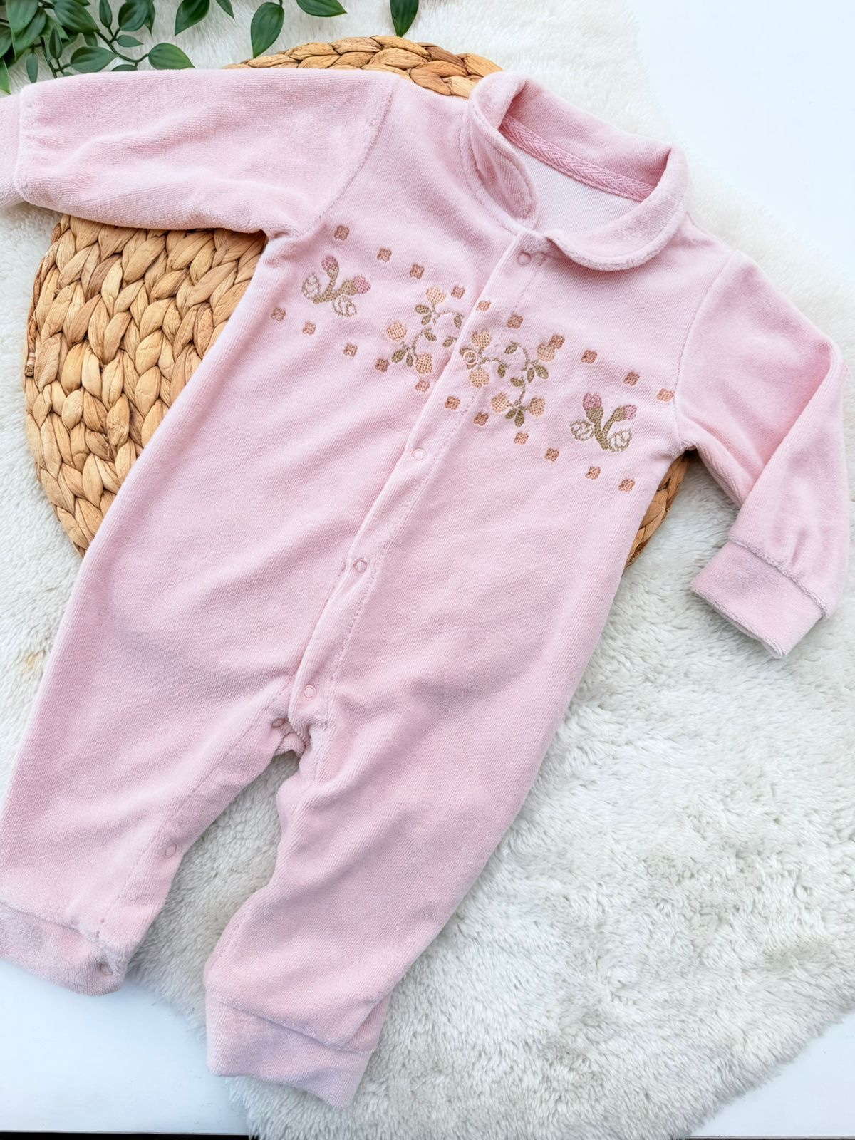 Grenouillère Brodée Velours et Coton Pur – Chaleur, Élégance et Qualité
