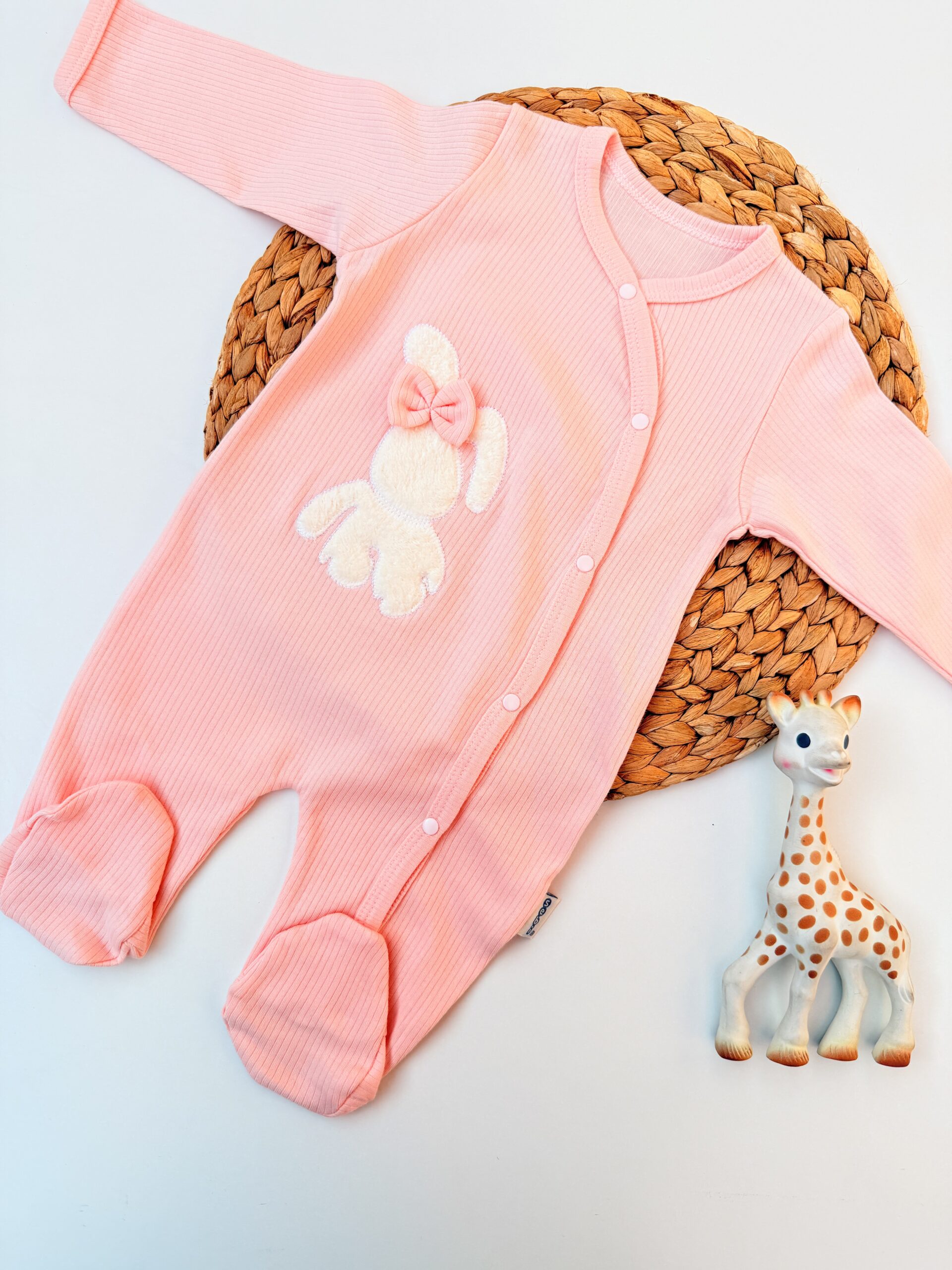 Grenouillère Coton Écru Lapin 3D – Douceur, Confort & Nœud Personnalisé