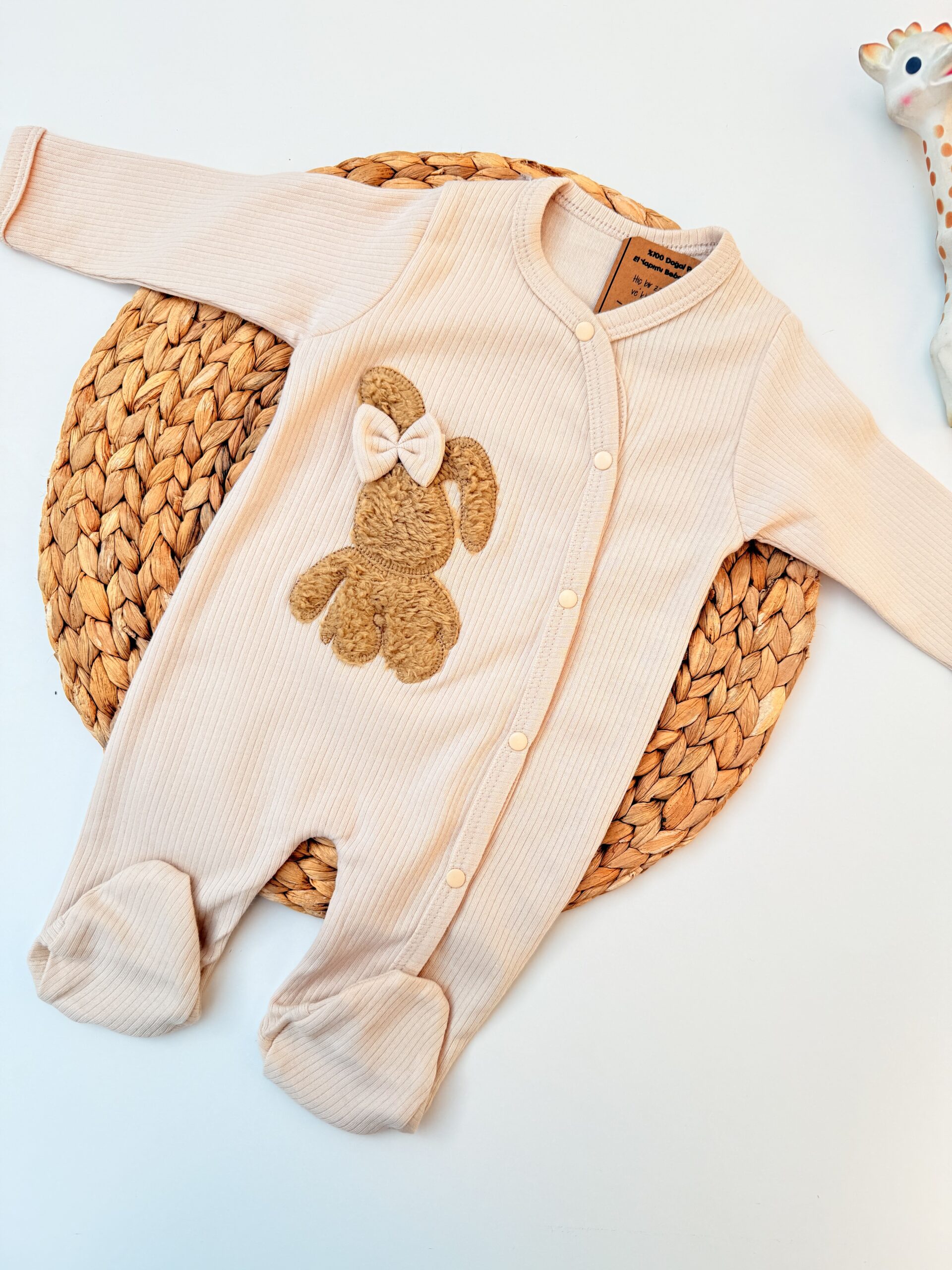Offrez à votre bébé un sommeil paisible et des nuits douces avec ce pyjama Grenouillère en coton écru, conçu pour allier confort, douceur et originalité. Son adorable imprimé et sa broderie lapin en 3D apporteront une touche de tendresse, tandis que le nœud personnalisé et l’effet rayé ajouteront une note d’originalité.