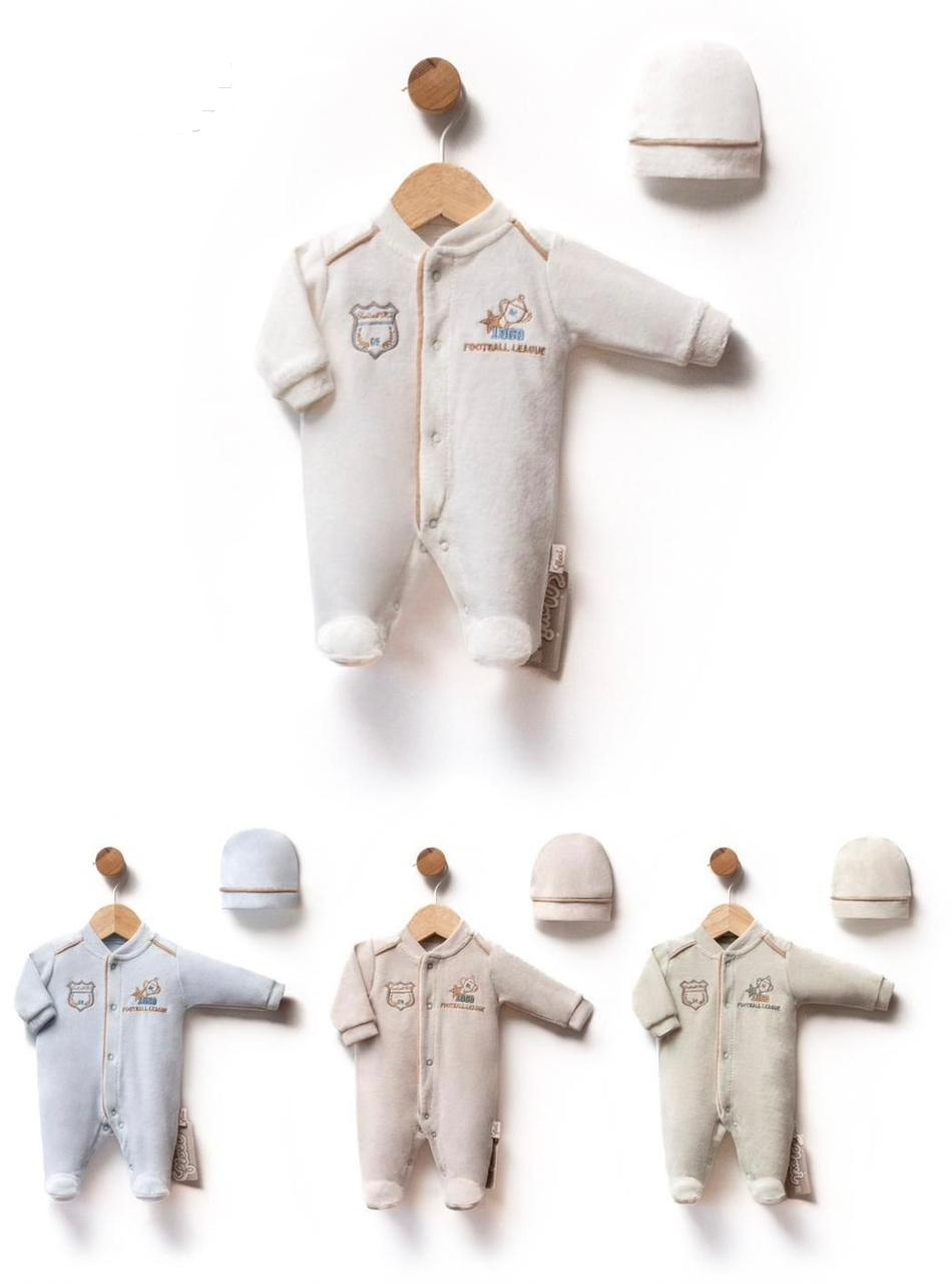 Grenouillère en Velours & son Bonnet Assorti
