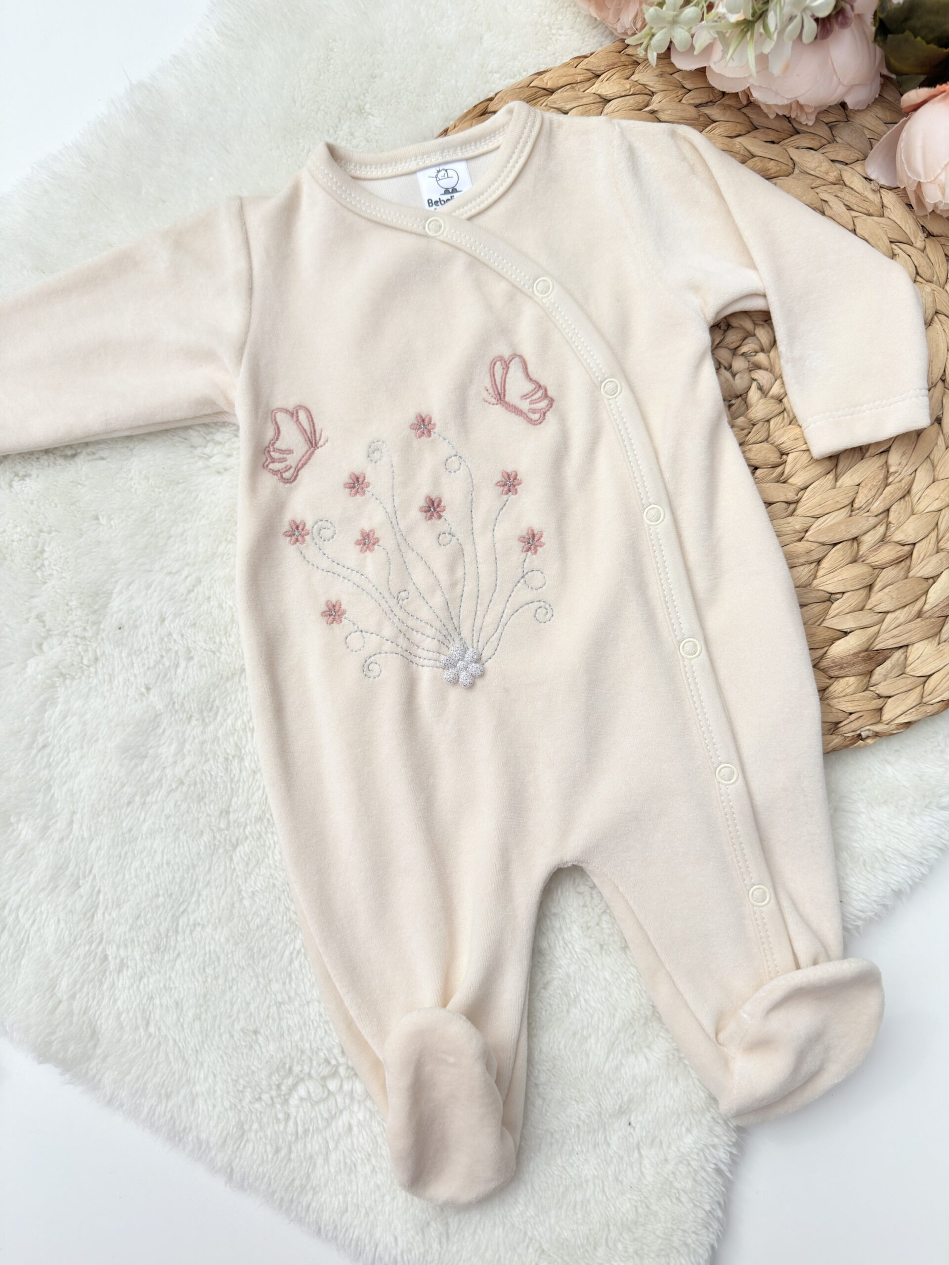 Offrez à votre bébé un écrin de douceur et d’élégance avec notre grenouillère velours beige brodée. Parfaite pour les nuits d’hiver, cette combinaison allie confort et raffinement.