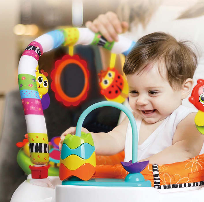 Le siège est rotatif à 360°, avec une base qui permet au bébé d’être soulevé de terre, de rebondir ou danser. Ce jumper est doté de plusieurs accessoires : clavier, bouton, hochets suspendus, avec de beaux sons et lumières pour divertir le bébé au maximum.