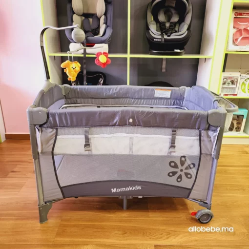 Le Lit & Parc Cododo Gris Mamakids est un lit cododo innovant et multifonctionnel qui offre un espace de sommeil sûr et confortable pour votre bébé à la maison et en déplacement. Doté d’un système cododo réglable en hauteur, il se fixe facilement au lit des parents pour des nuits paisibles et rapprochées.