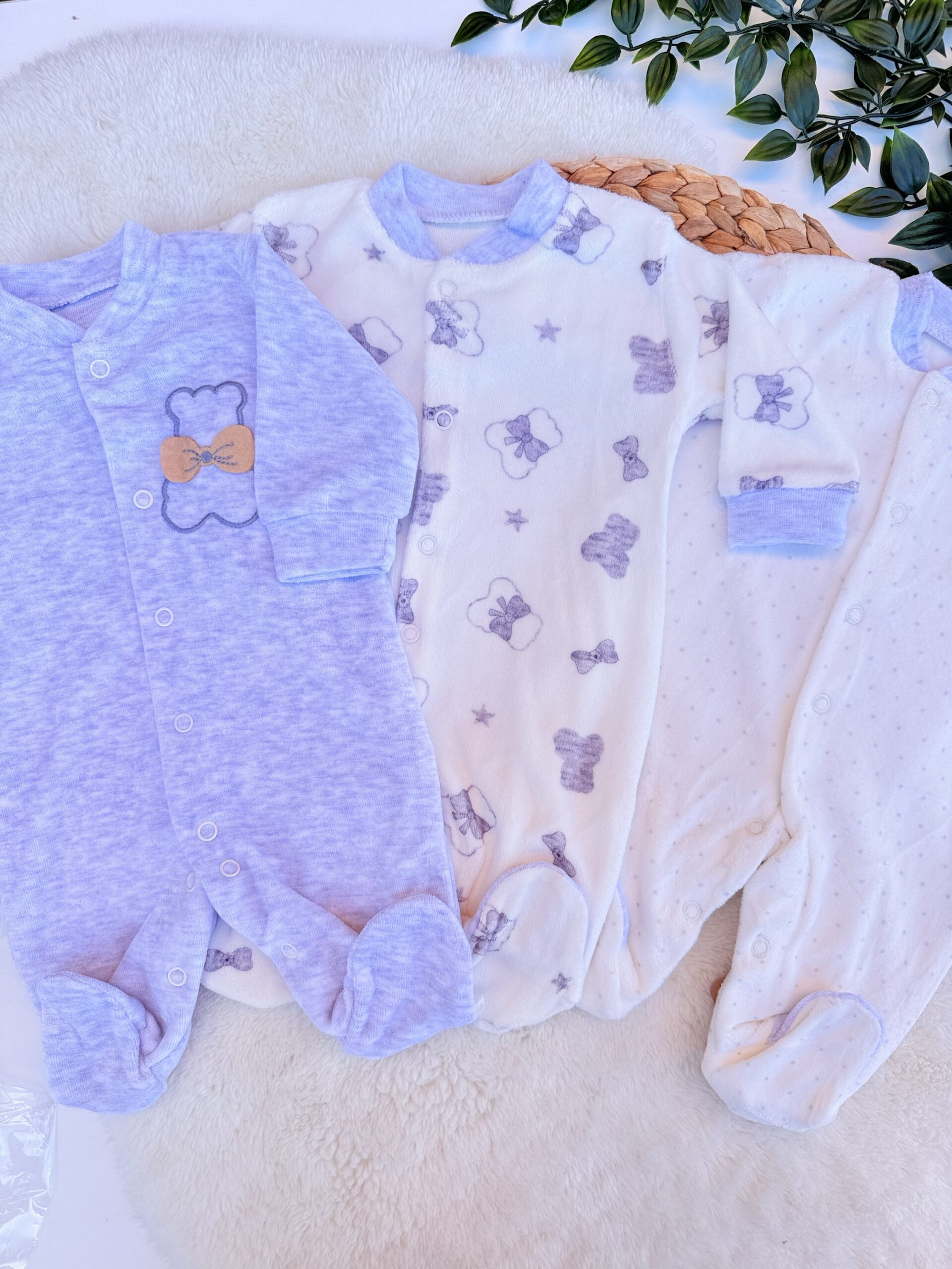 Lot 3 Grenouillères 0-3mois Gris Velours & Coton – Douceur & Chaleur