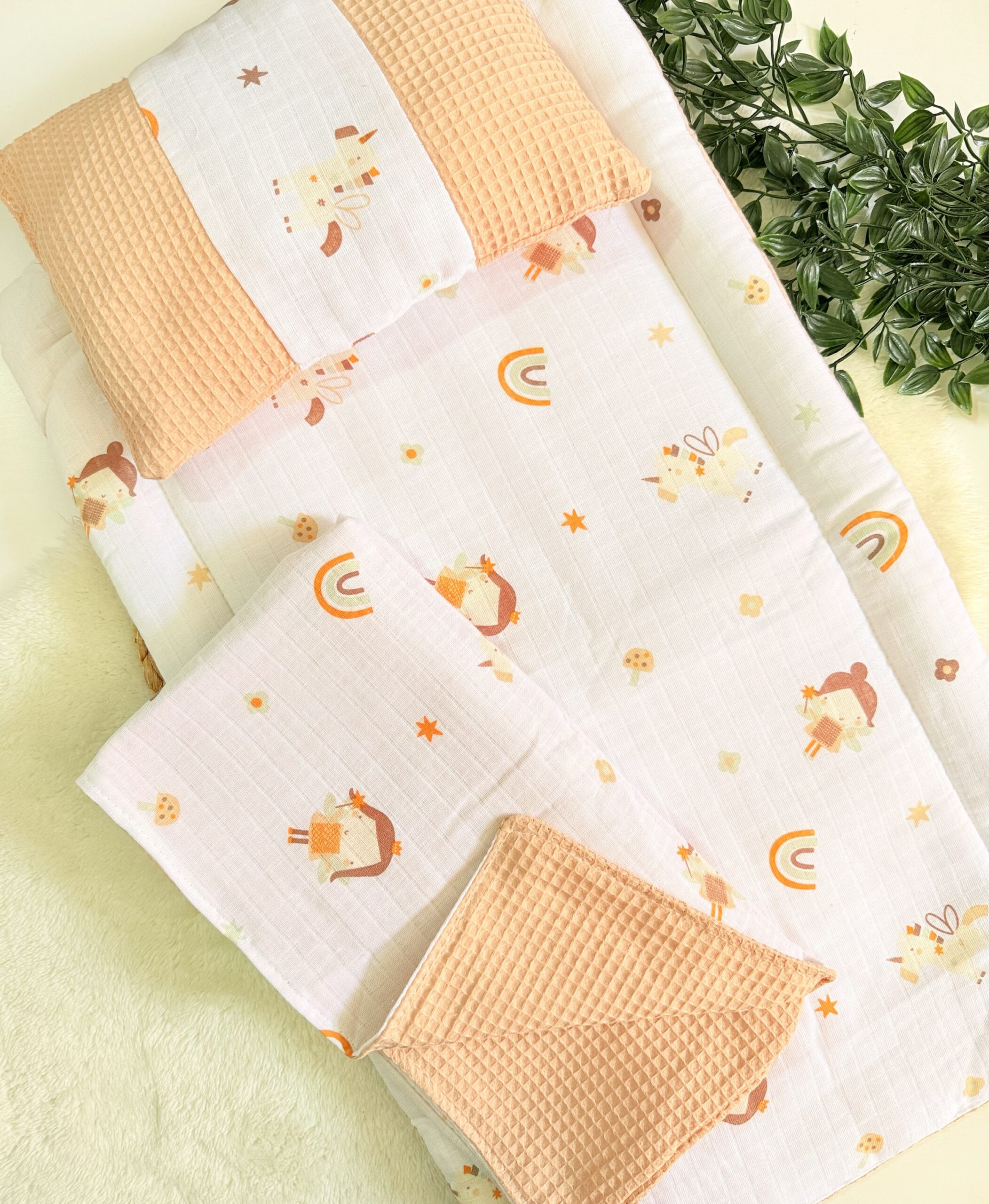 Ce linge de lit matelas rembourré est conçu pour être placé directement sur le drap-housse, créant ainsi une couche douce, confortable et hygiénique. Sa double face offre une polyvalence : une face en coton pour un contact doux et une autre avec un effet gaufre pour une texture différente. Le lot est livré avec un oreiller pour un ensemble complet. Ces protections permettent à bébé d’avoir son propre espace sécurisé, assurant qu’il se sente en sécurité et confortable pour bien dormir.