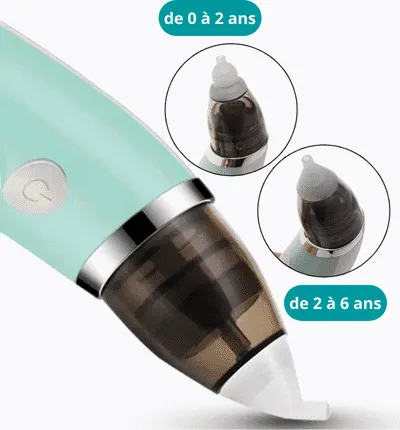 Les 2 embouts d’aspiration fournis permettent d’adapter l’appareil à la morphologie nasale de votre enfant et assurent une hygiène optimale grâce à leur système de remplacement facile.
