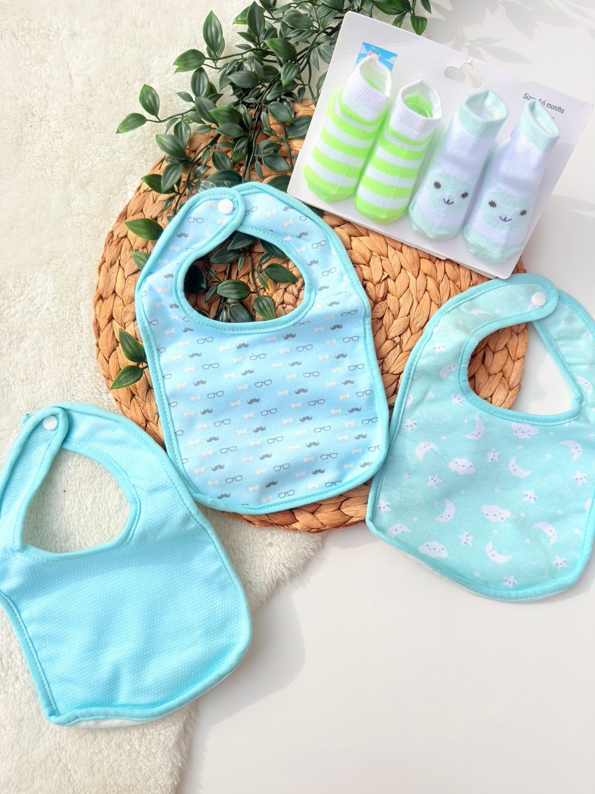 Pack Accessoires Tendresse – 3 Bavoirs bébé & 2 Paires de Chaussettes