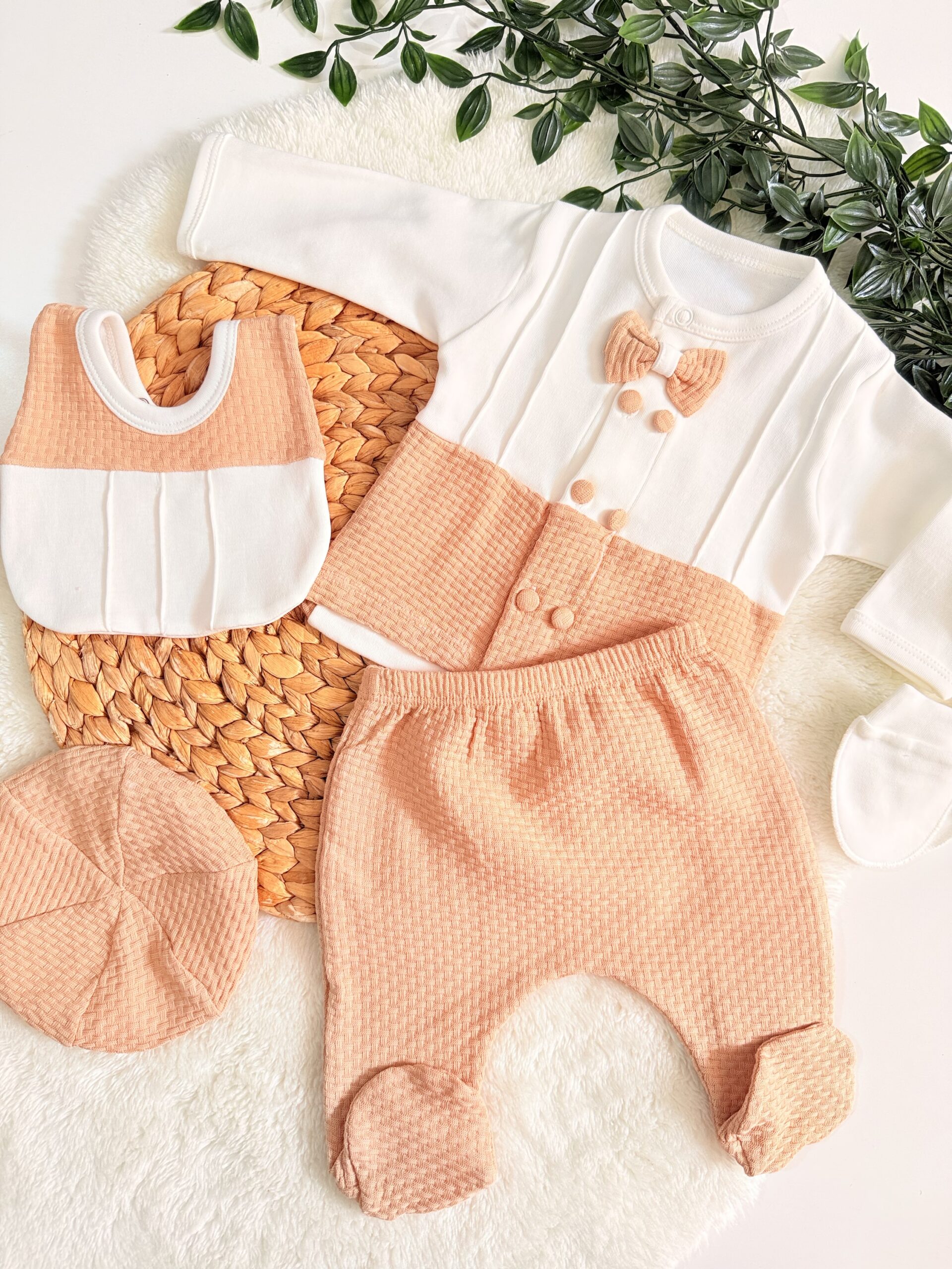 Chaque pièce est fabriquée en coton pur, une matière douce, respirante et respectueuse de la peau délicate de votre nouveau-né. Le pack comprend :