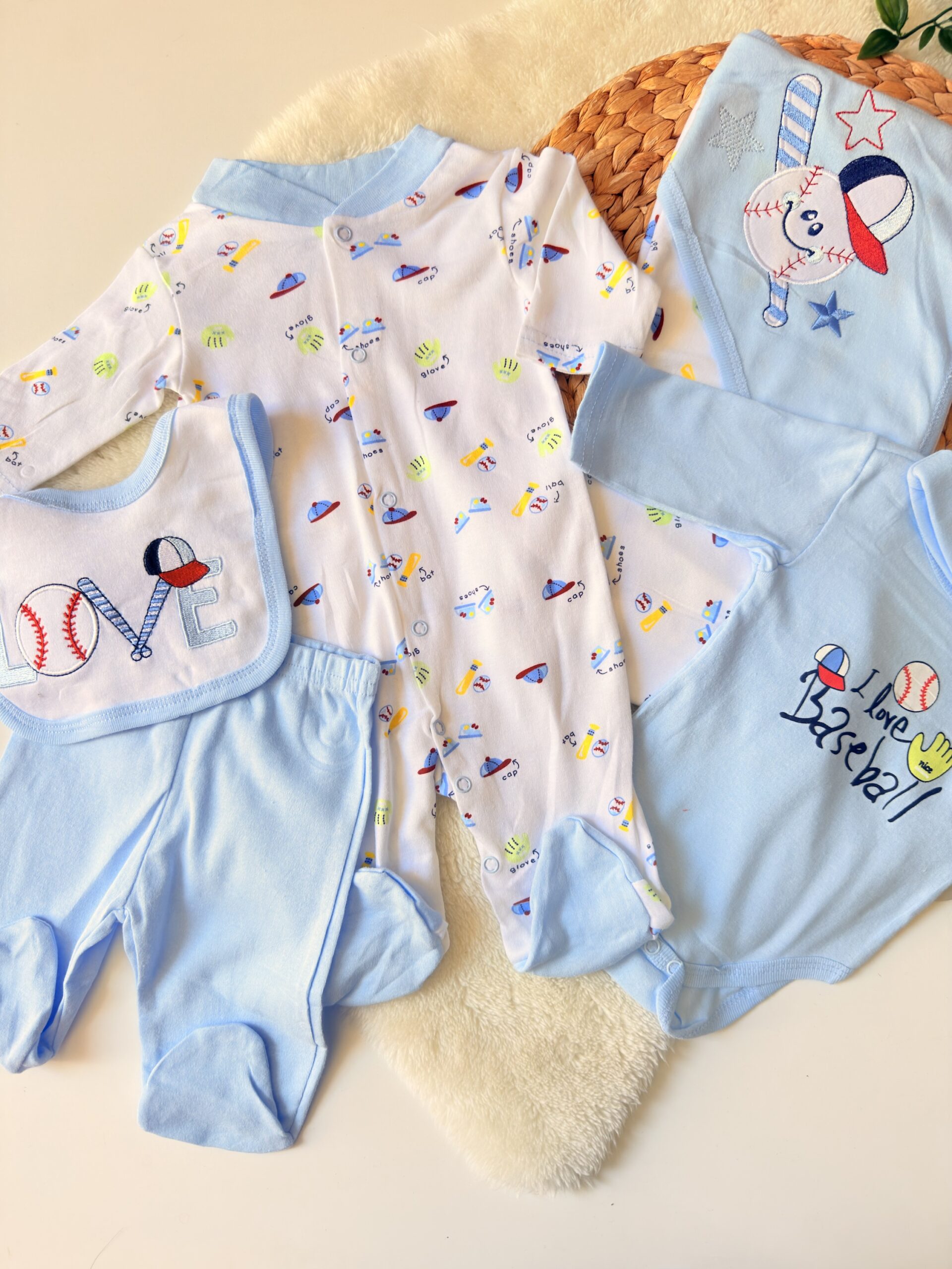 Préparez l’arrivée de votre nouveau-né avec cet ensemble clinique essentiel, conçu pour envelopper votre bébé de douceur et de confort dès ses premiers instants. Chaque pièce de ce pack est confectionnée en coton soft (doux), garantissant un contact délicat et respectueux pour sa peau ultra-sensible. Le coloris baseball bébé garcon, idéal pour célébrer la naissance de votre enfant.