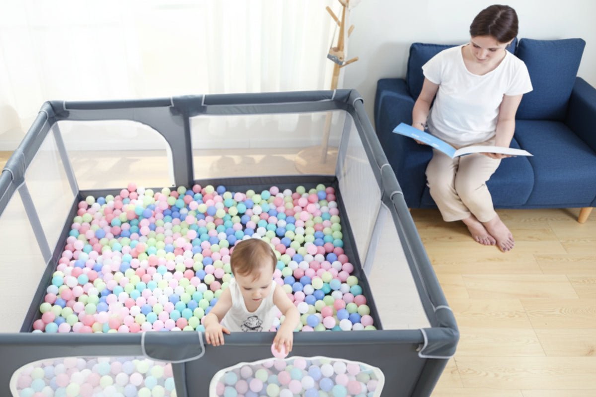 - 50 balles colorées incluses : Couleurs vives (rose, bleu, vert, jaune) pour stimulation visuelle