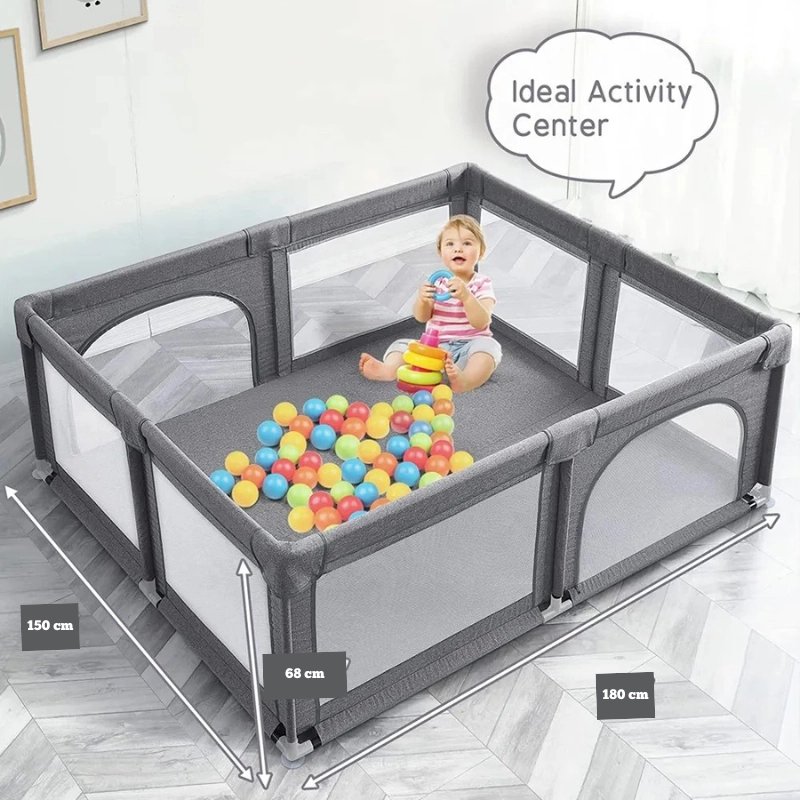- Surface au sol : Suffisante pour ramper, se déplacer et jouer avec plusieurs jouets
