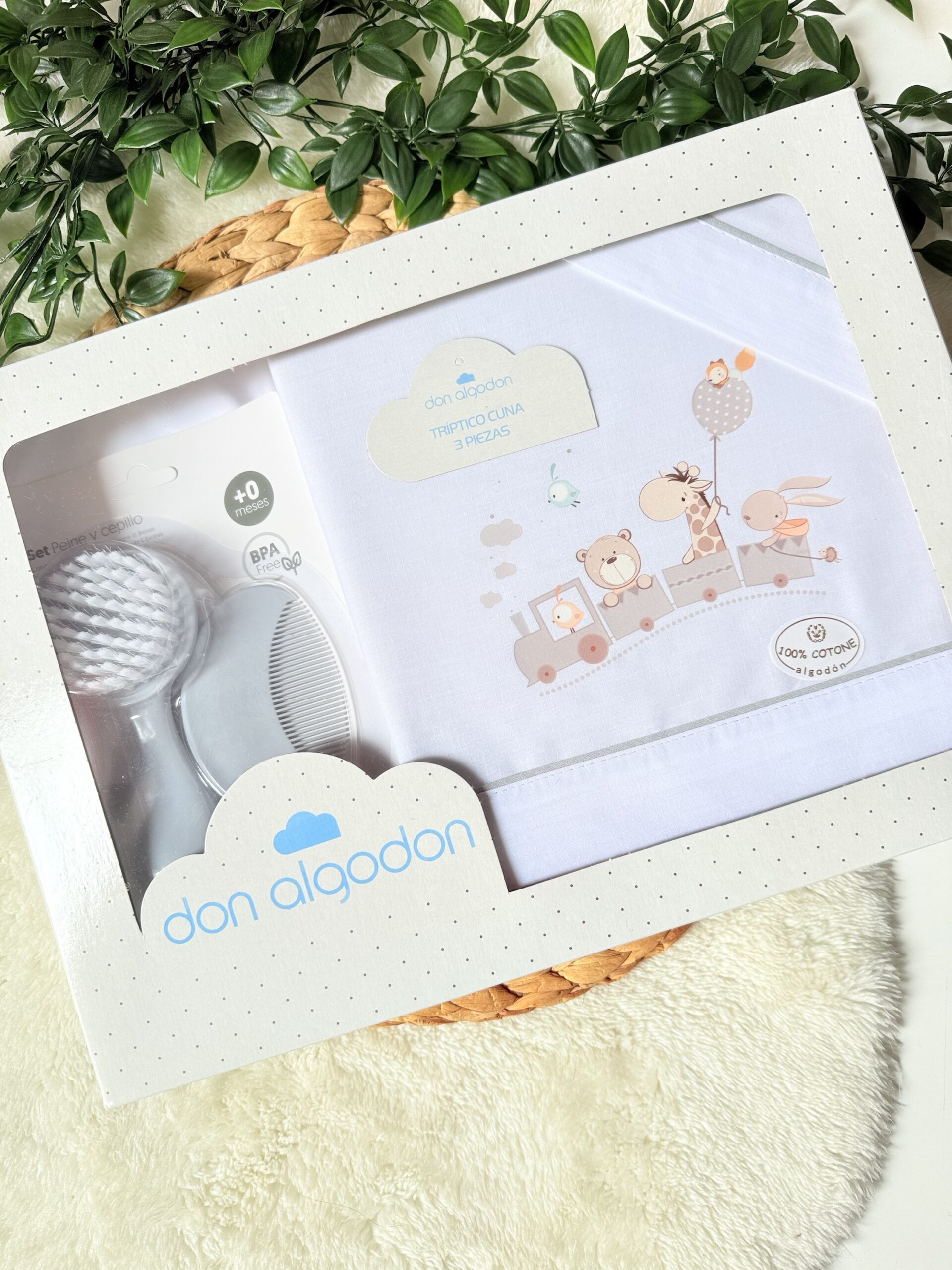 Offrez un sommeil enchanté à votre bébé avec cette parure de lit 3 pièces en coton de la marque Espagnol Don Algodon, modèle Animalitos. Conçue pour un lit de 60 x 120 cm, elle est accompagnée d’un ensemble de deux brosses à cheveux pour prendre soin de bébé en douceur dès son réveil.