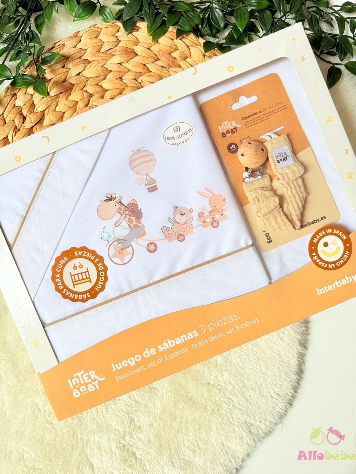 Parure de Lit Bébé coton “Animalitos” (60×120 cm) + Porte-Sucette – interbaby