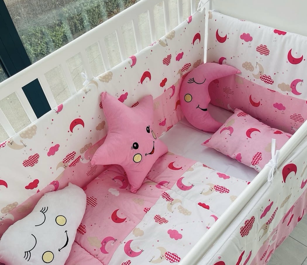 Parure de Lit Bébé 5 Pièces Complète : Tour de Lit, Couette, Oreiller et Alèse (120×100 cm)