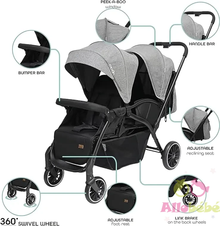 Poussette jumeaux Kidilo : le bonheur à portée de main.