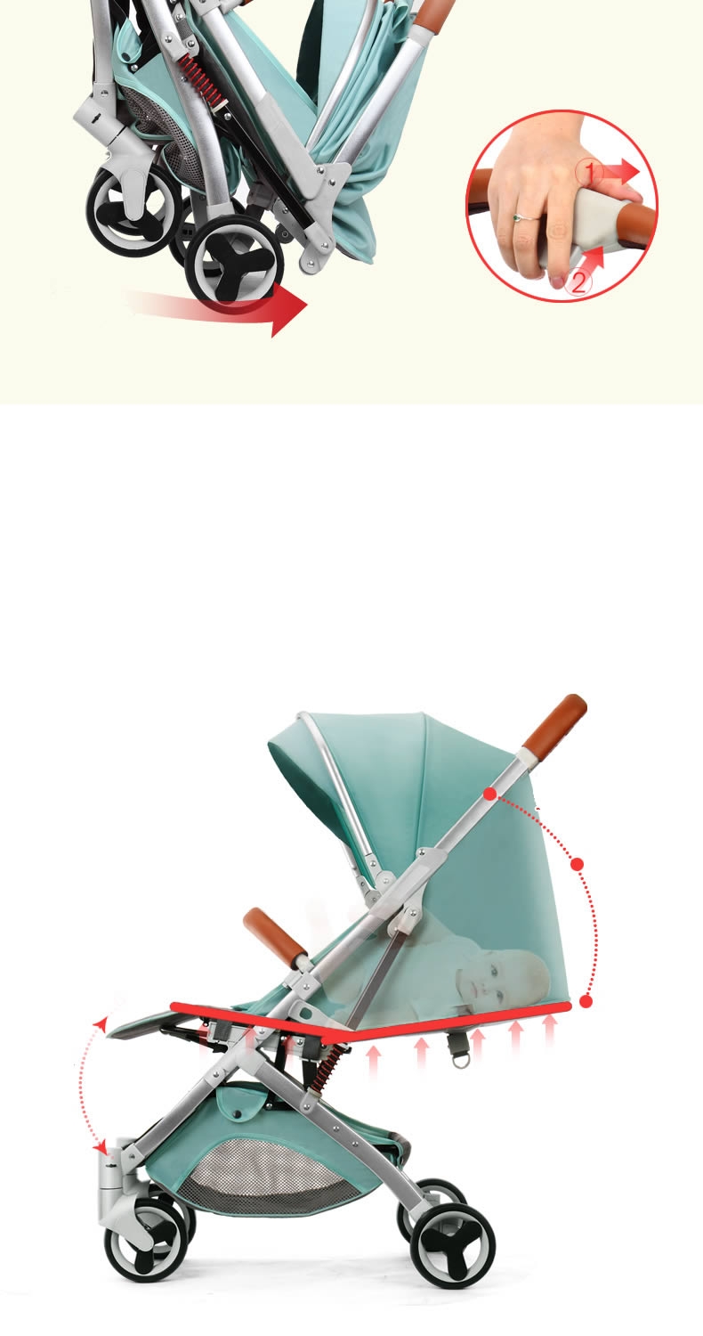 poussette bébé ultra léger, pliable avec amortisseurs il peut s’asseoir et coucher, avec poche et parapluie elle peut être dans l’avion