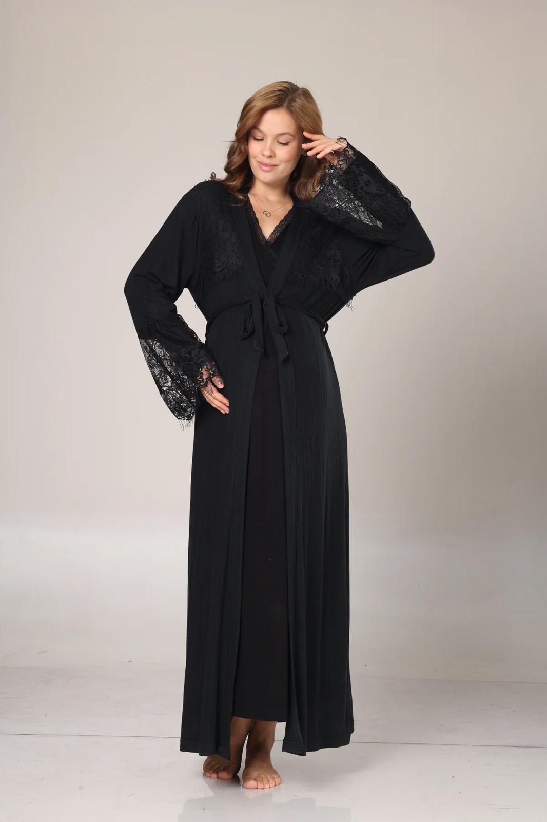 Pyjama dentelle longue avec peignoir noire – grossesse et allaitement