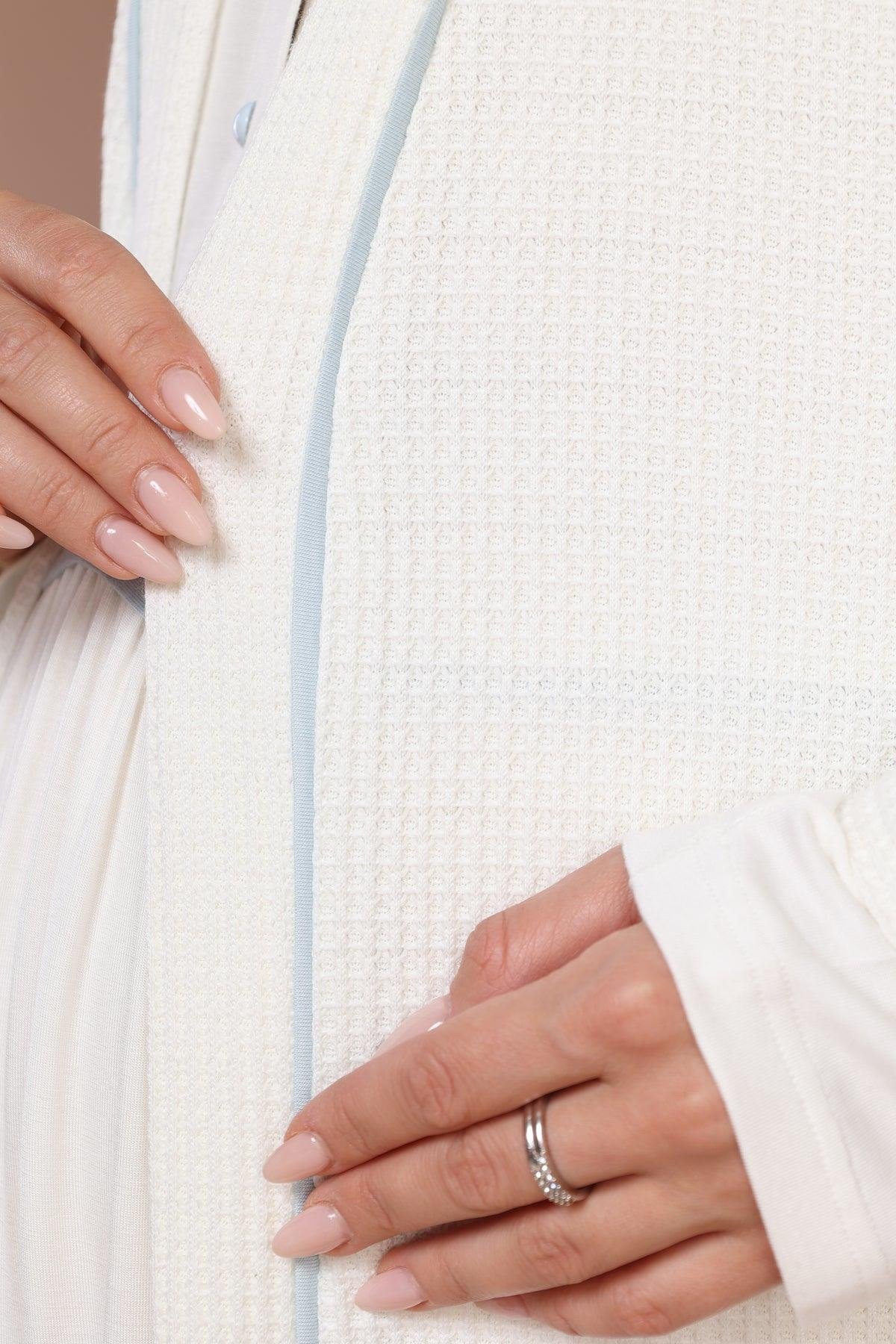 Ensemble pyjama et peignoir respirants details bleu - Douceur et confort pour les mamans