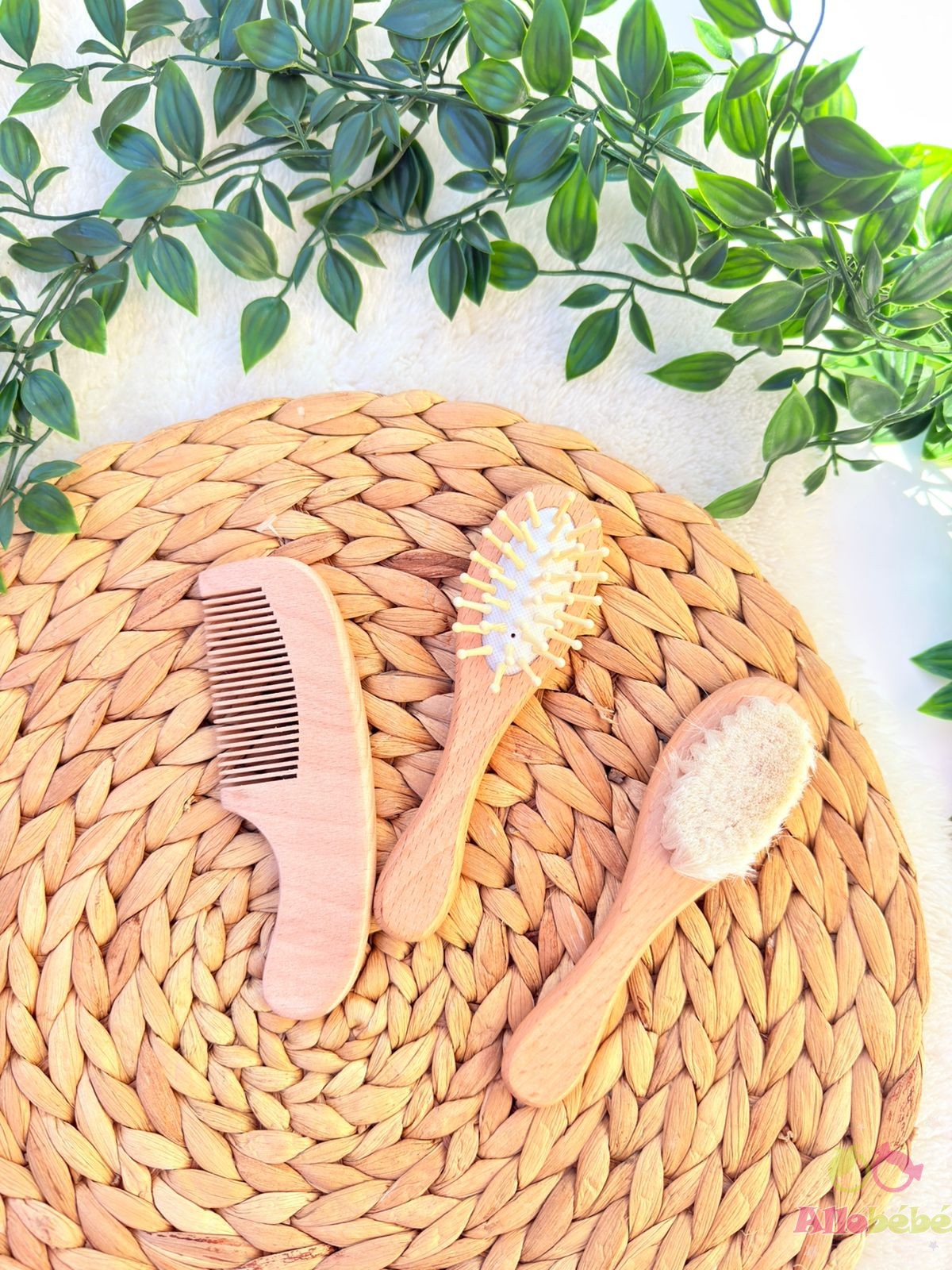 Set de 3 Brosses Bébé en Bois Naturel – Rituel Complet