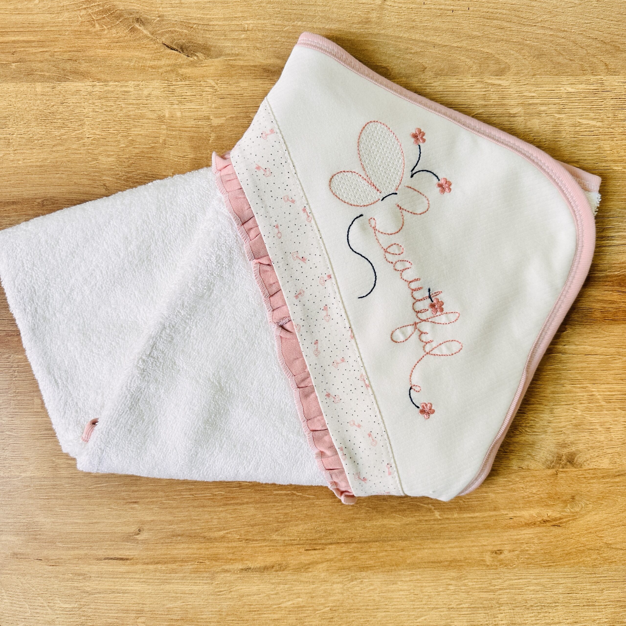 La sortie de bain avec capuche de Mora est idéale pour envelopper bébé à la sortie du bain.