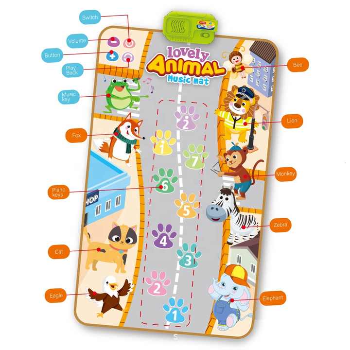 Éveillez le génie musical de votre enfant avec ce tapis bébé musical interactif, un espace de jeu dynamique conçu pour stimuler tous les sens. Parfait pour favoriser l’activité physique dès le plus jeune âge, ce tapis permet à bébé de créer ses propres mélodies tout en s’amusant avec ses amis les animaux sauvages. Que ce soit par la pression des mains ou des pieds, chaque mouvement déclenche une note ou un cri d’animal, offrant une expérience ludique unique qui transforme le salon en une véritable salle de concert.