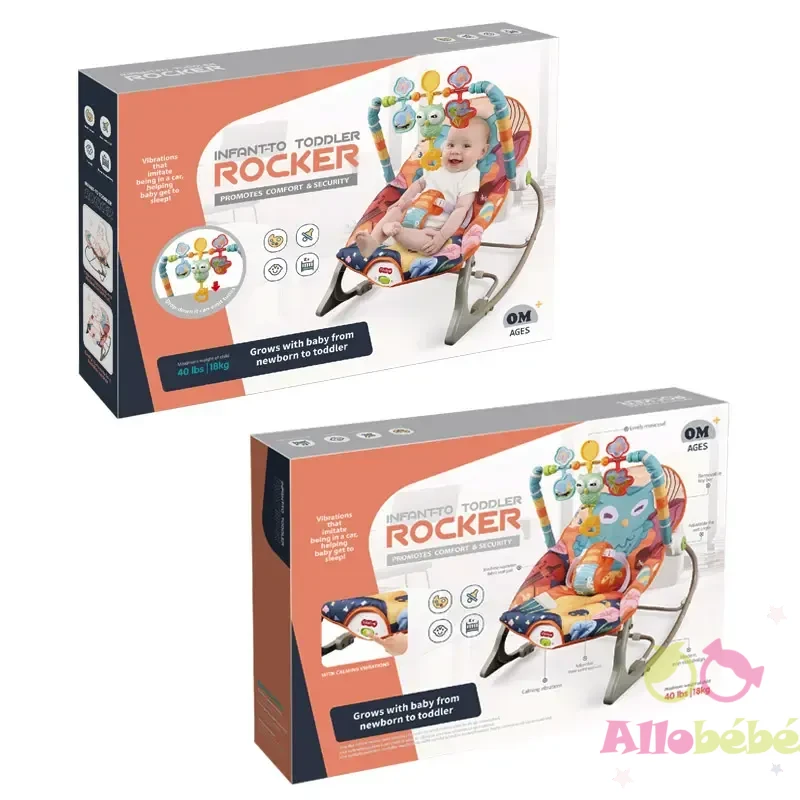 Divertissant, ce transat joue de la musique, possède une arche de jeux amovible l’un d’eux et musical ,il diffuse des vibrations apaisantes.