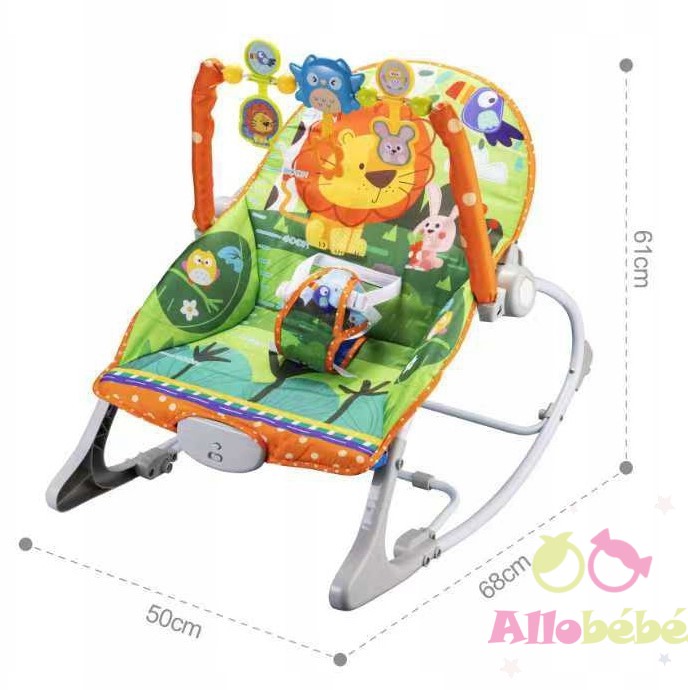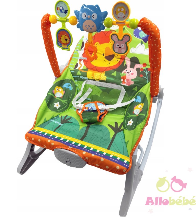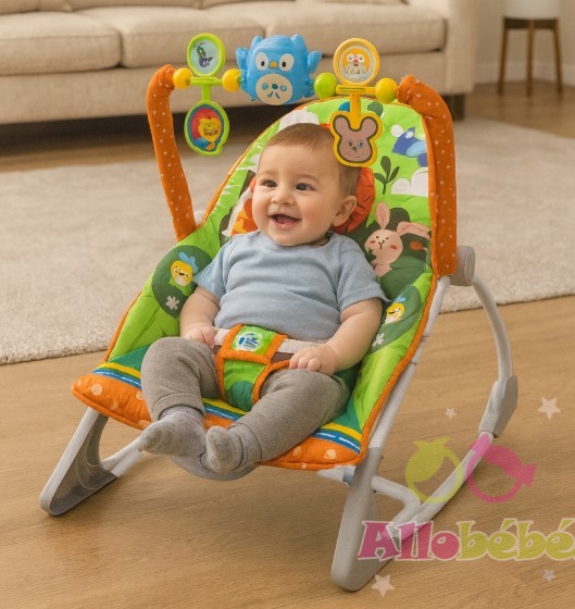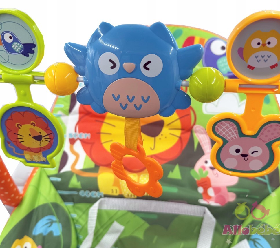 Avec son design coloré et ses motifs animaux adorables, ce transat devient vite l’endroit préféré de bébé pour jouer, se reposer ou s’endormir.
