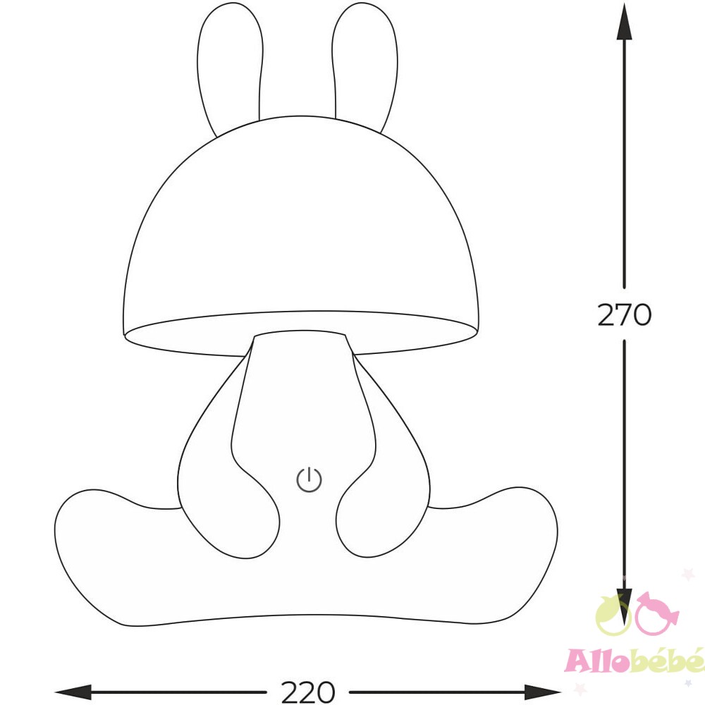 La Veilleuse LED Lapin Bunny est une lampe de chevet adorable en forme de lapin assis. Design épuré blanc avec oreilles dorées chromées. 3 niveaux d’intensité lumineuse réglables au toucher. LED intégrée 3W, lumière douce .