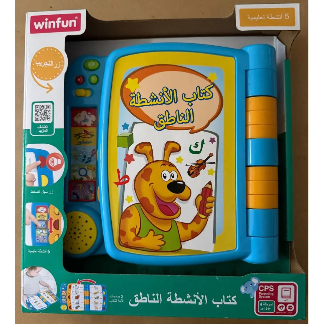 Le Livre d’Activités Interactif Arabe Winfun (كتاب الأنشطة الناطق) est un jouet éducatif parlant conçu pour les enfants dès 24 mois. Avec ses 3 pages tournantes, il permet de découvrir les lettres arabes, les chiffres, les animaux et les objets du quotidien de manière ludique. 5 activités d’apprentissage, 26 effets sonores, 4 sons d’instruments et un mode quiz pour tester les connaissances. Boutons colorés faciles à presser par les petites mains.